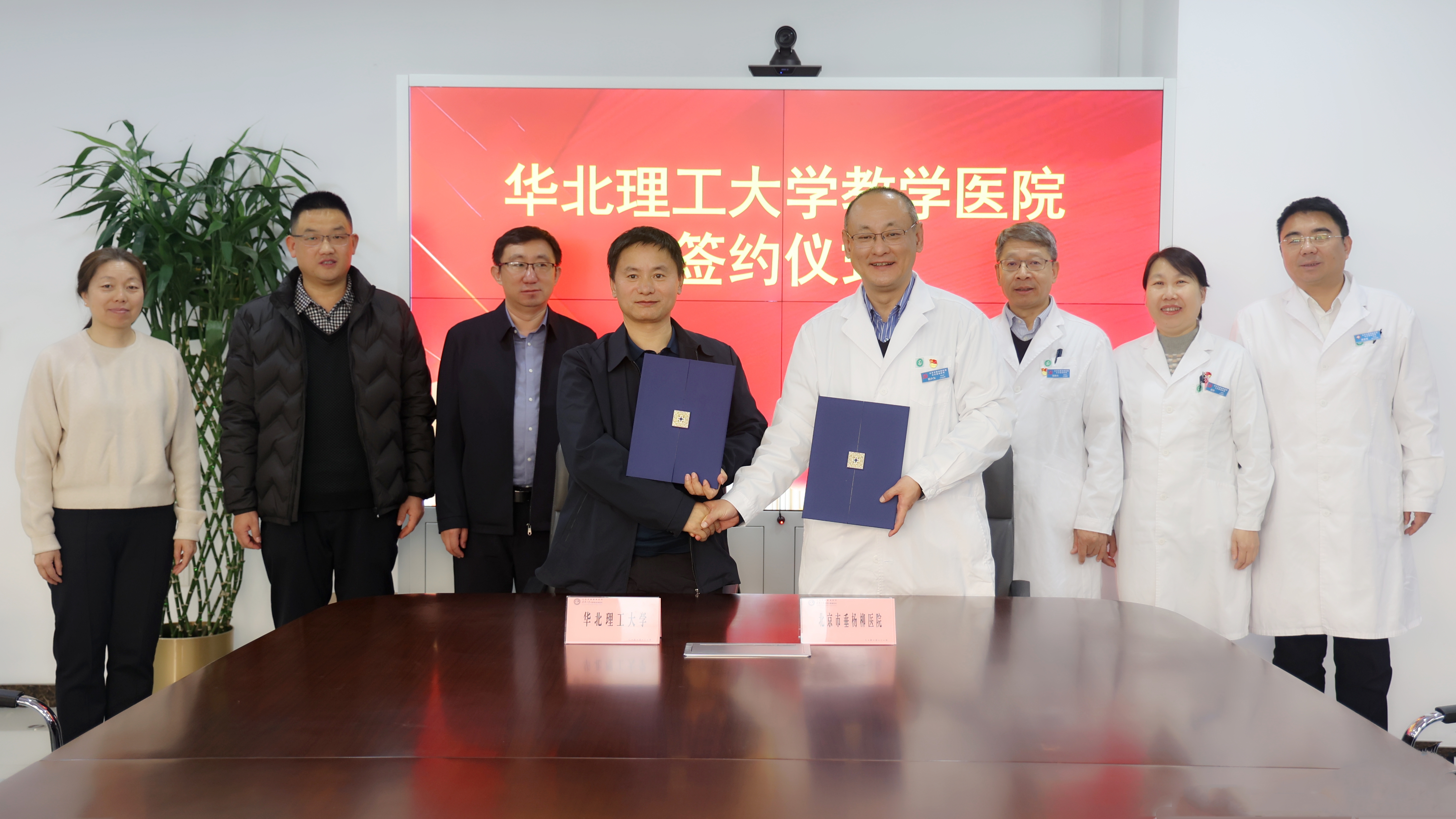 陶四海与程少为分别代表华北理工大学和北京市垂杨柳医院,共同签署了《华北理工大学实践教学基地合作协议书》。随后,陶四海和张新庆共同为“华北理工大学教学医院”揭牌。与会领导共同见证了合作协议签署和教学医院揭牌,并合影留念。