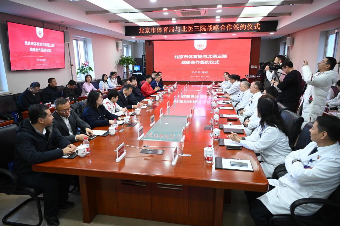 为深入学习贯彻习近平总书记关于体育工作的重要论述和指示批示精神,立足服务体育强国建设战略部署,紧紧围绕首都“四个中心”城市战略定位,充分发挥“双奥之城”优势,2025年1月9日上午,北京大学第三医院与北京市体育局在北京大学第三医院举行战略合作签约仪式。