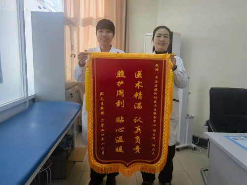 闫先生亲自送来的锦旗,不仅表达了他对两位大夫的感激之情,更彰显了医患之间的深厚情谊。这份沉甸甸的信任,激励着滨河街道社区卫生服务中心继续坚守初心、为爱前行,努力为更多患者提供优质、专业、全面的服务,为社区居民的健康保驾护航。