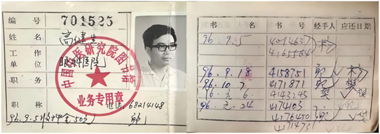上图为1996年高健生教授中国中医研究院图书馆个人借书证