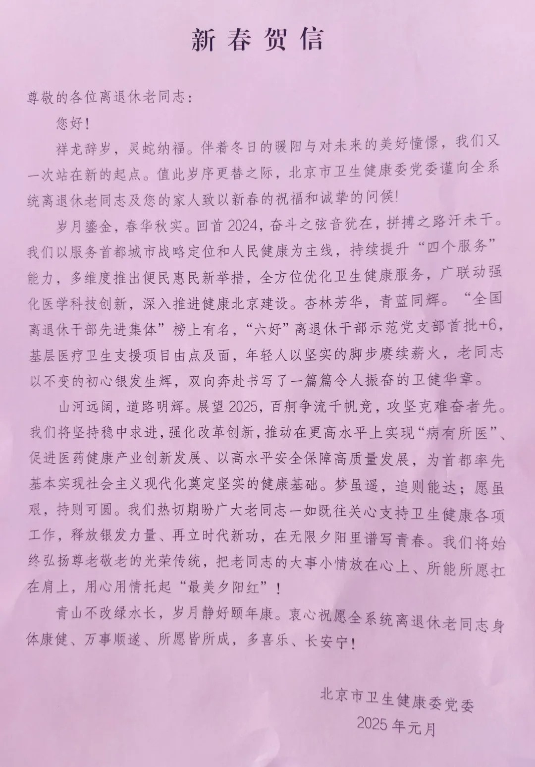 长期以来,北京市卫生健康委党委高度重视离退休干部工作,通过各种形式关心关爱离退休工作发展和老同志服务保障,使老同志们充分感受到组织的关怀与温暖。老党员代表赵淑英激动地说:感谢党组织的关心关怀,一定不忘初心、牢记使命,继续团结带领支部老党员们发挥余热、贡献力量。