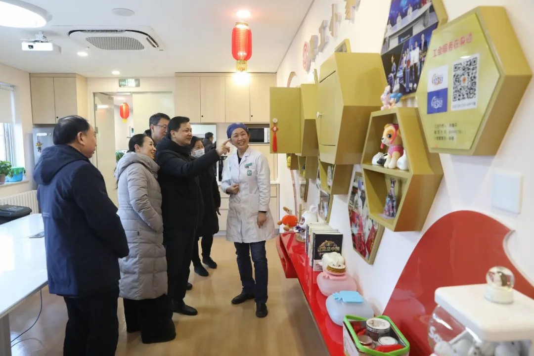 徐长顺同志一行还先后来到肿瘤内科“暖心小屋” 、感染中心门诊“温馨小筑”、 口腔科“颜唯雅舍”三个职工小家参观。叮嘱大家营造好职工小家,让广大职工在工作之余放松身心,缓解压力,更好地服务患者。祝福大家:新春快乐!多喜乐,长安宁!