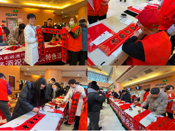 1月22日,传统节日农历小年到来之际,北京清华长庚医院志愿服务队顺利举办第十届“挥毫泼墨迎新春,志愿服务添祝福”活动。本次活动特别邀请到中国艺术研究院的师生志愿者走进医院,与医院志愿服务工作队书法特长银龄志愿者一起现场展示中国书法艺术的魅力,为就诊患者、本院员工书写并赠送春联、福字,送上饱含深情的节日祝福与新春问候。