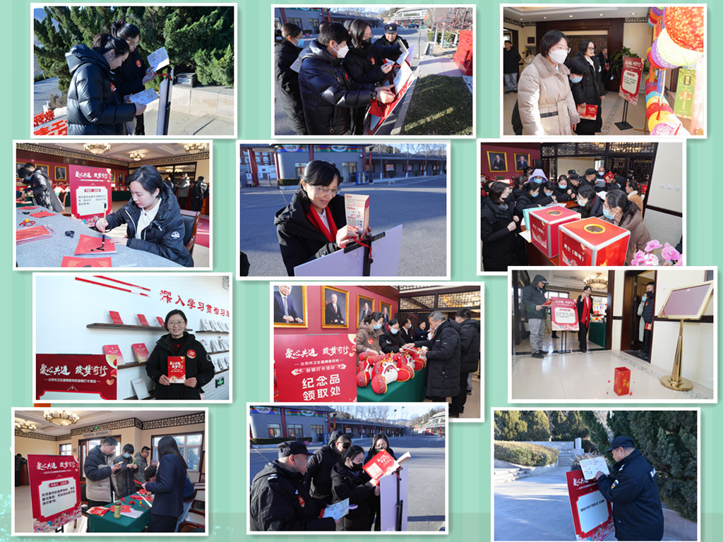 活动伊始,职工们开启了特色打卡活动,活动共设计室内、室外两个环节,室内打卡活动设置了“写福字、送祝福”“剪窗花、迎新春”“猜灯谜、接好运”“玩投壶、纳福气”;室外打卡活动设置了习近平新时代中国特色社会主义思想主题文化墙、“为党育才为党献策”党校初心墙、“新时代好干部标准”主题墙、“实事求是”石碑、“卫生健康职业精神”主题墙等党校红色文化主题墙校园打卡。让大家在挥毫泼墨、文化熏陶及趣味竞技的同时,互相传递新春祝福。打卡、集印章、兑换纪念品,活动现场热闹非凡,每个人的脸上都洋溢着节日的笑容,揭开了迎新会欢庆前的小高潮。