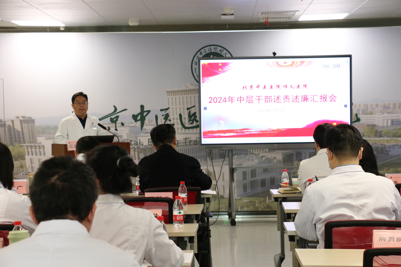 为深入贯彻落实全面从严治党主体责任,推动党风廉政建设和反腐败工作向纵深发展,努力营造风清气正、担当实干的良好政治生态,2025年1月13日至14日,北京中医医院顺义医院召开2024年度中层干部述责述廉大会。区委卫生健康工委委员、一级调研员卞志敏同志现场指导,医院党政班子成员、全体中层干部、“两代表一委员”以及党风政务监督员代表共计70余人参加会议。会议由纪检办主任张佳主持。