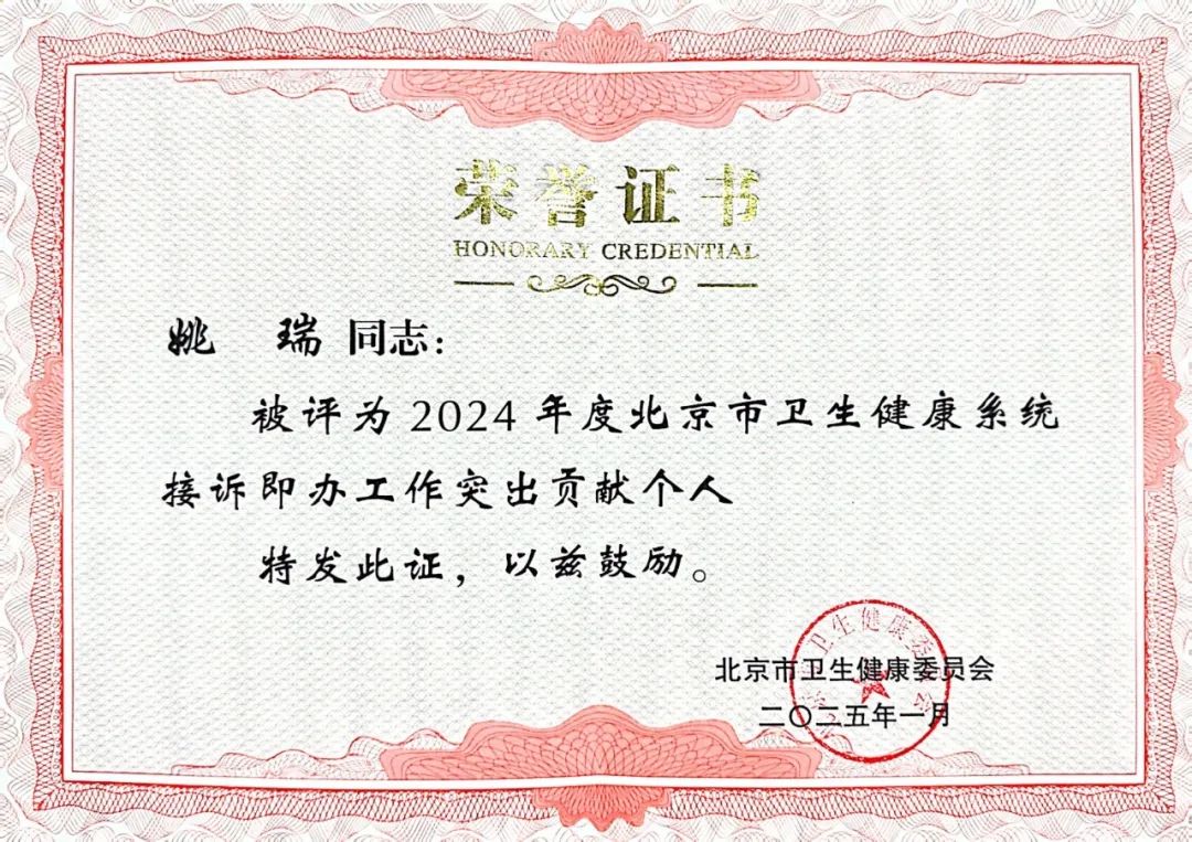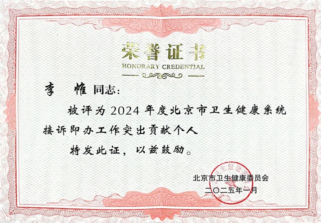 北京中医医院获得2024年度北京市卫生健康系统接诉即办工作突出贡献集体和个人称号