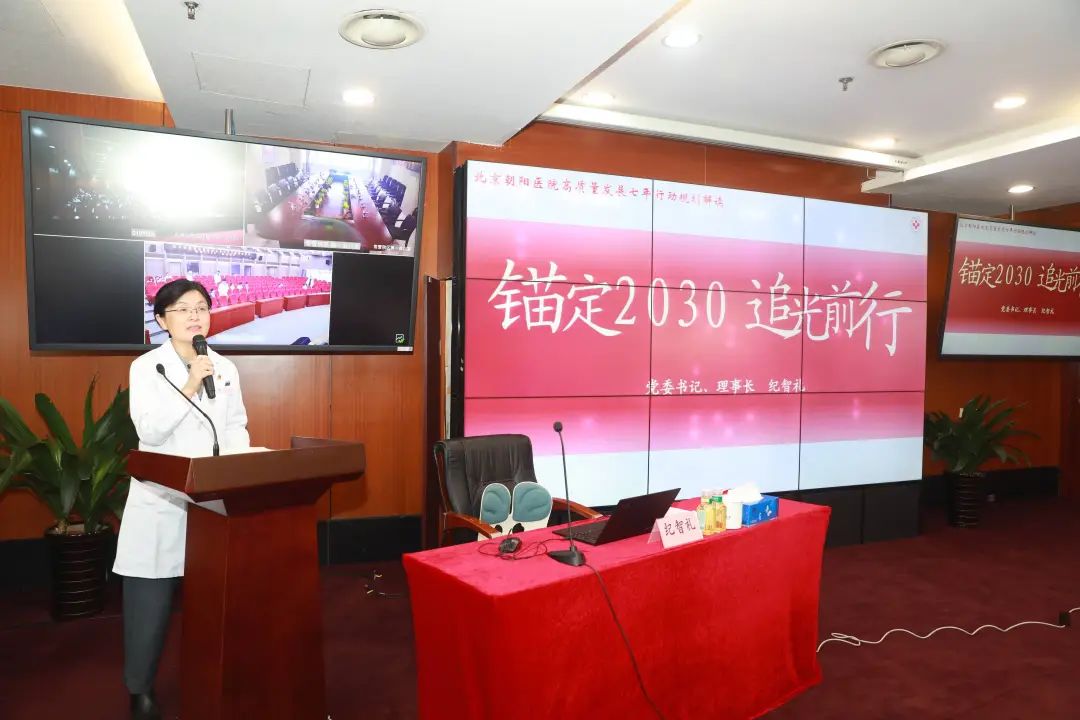 2025年1月22日,北京朝阳医院组织召开七年行动规划专题培训会。会议设置本部主会场和常营院区、石景山院区分会场,医院第一批青年管理骨干、统战人士代表、高层次人才代表及部分干部职工共计350余人参加会议。院党委书记、理事长纪智礼,党委副书记吕少丽,党委常委、常务副院长王明刚,党委委员、副院长梅雪出席。会议由吕少丽同志主持。