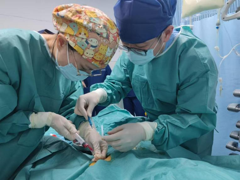 图二:重症医学科金伯旬与何莉医生凌晨两点进行ECMO紧急置管