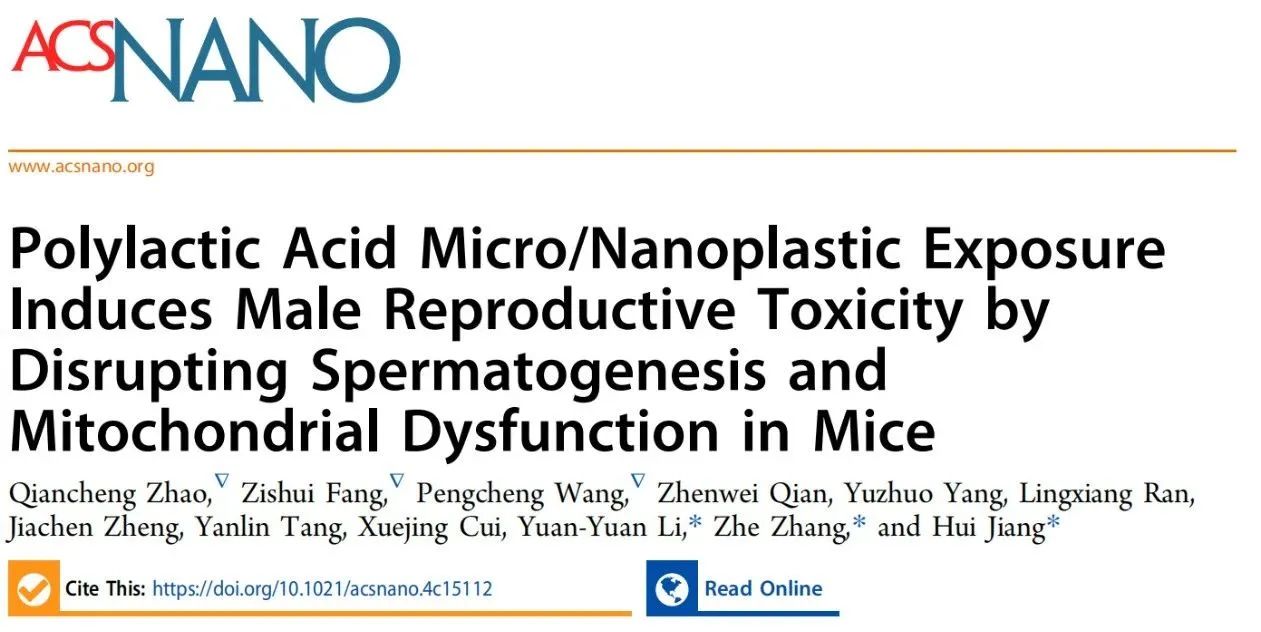 1月27日,北大医院姜辉教授团队等在材料科学领域权威学术期刊ACS Nano 上在线发表了题为:Polylactic acid micro/nanoplastic exposure induces male reproductive toxicity by disrupting spermatogenesis and mitochondrial dysfunction in mice(聚乳酸微/纳米塑料暴露,通过破坏小鼠精子发生和线粒体功能障碍来诱导雄性生殖毒性)的研究论文,发现聚乳酸微/纳米塑料可侵入精子,诱导生殖毒性。