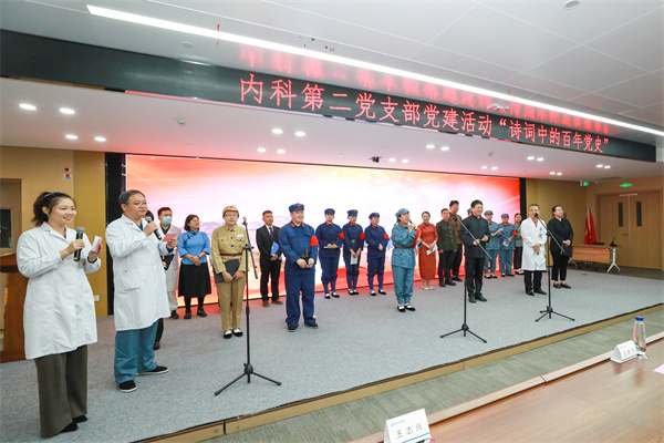 为呈现这场意义非凡的活动,内科第二党支部进行了精心筹备。党员们反复研读党史资料,深挖诗词背后的历史故事与精神内涵,从服装道具的细致挑选到表演细节的精心打磨,每一个环节都凝聚着全体成员的心血,力图以真挚的情感和精彩的演绎,展现百年党史的波澜壮阔。