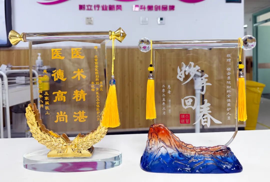 如今,距离手术已过去两年多,张阿姨成功战胜了病魔,获得新生。她的生活重回正轨,脸上洋溢着自信与乐观。为了表达感激之情,张阿姨特意定制了一面水晶锦旗,上面 “妙手回春” 四个大字,是对佑安医院妇科医护团队最高的赞誉,更是医患之间深厚情谊的见证。