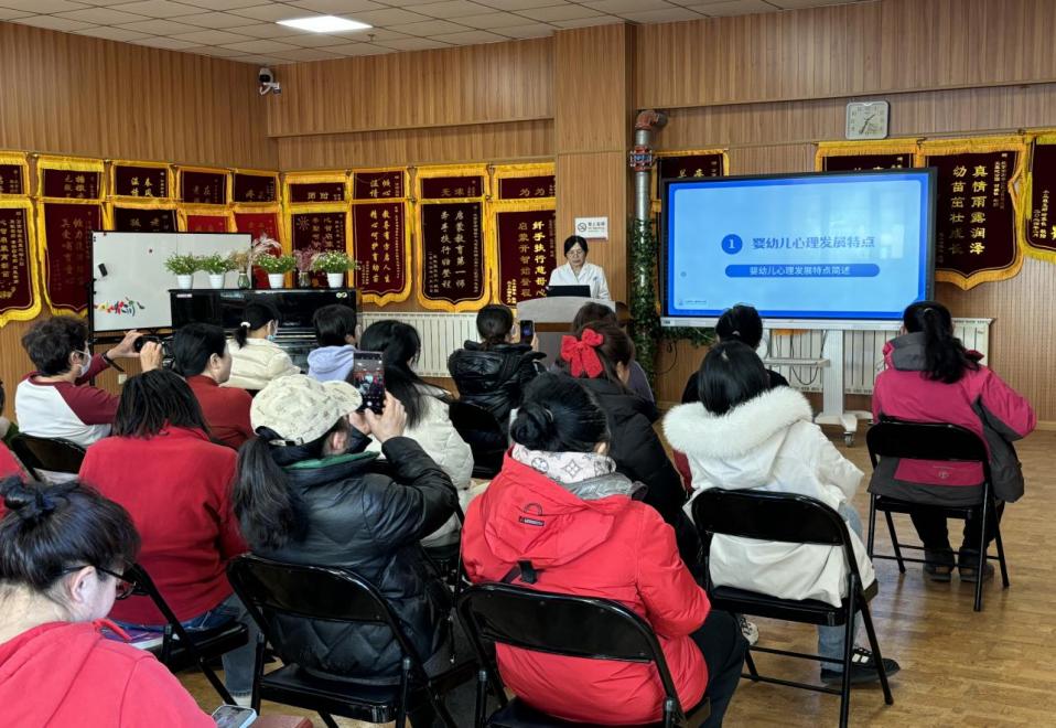 活动现场,五里坨社区儿保科医生韩爱萍担任主讲人。她凭借丰富的临床经验和深厚的专业知识,深入浅出地讲解了婴幼儿心理发展的各个阶段特点。从新生儿对安全感的本能需求,到幼儿自我意识的逐步觉醒,每一个关键阶段的心理特征都剖析得十分透彻,让在座的老师和家长们对孩子的内心世界有了全新认识。
