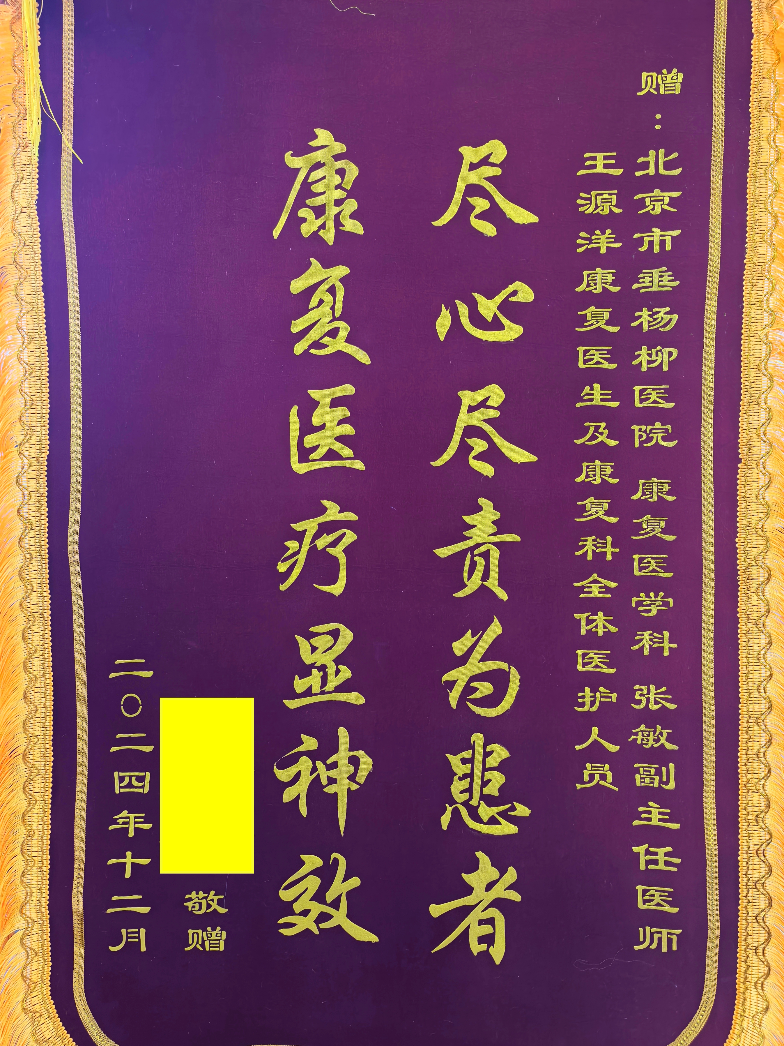 在此,我要向垂杨柳康复医学科的全体成员致以最深的敬意与感激,尤其是那些用爱心与专业为我筑起康复桥梁的康复师们。在我最脆弱的时刻,是你们用无尽的耐心与温暖,为我点亮了前行的灯塔。你们的每一次细心指导,每一句鼓励的话语,都如同春风拂面,让我感受到了前所未有的力量与勇气。是你们,用专业的双手,为我拂去了心中的阴霾,让我在康复的旅途中,找到了属于自己的光明与希望。