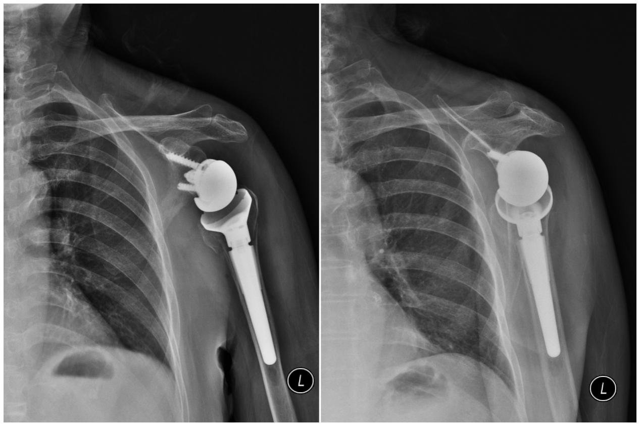 ▲人工反式全肩关节置换后