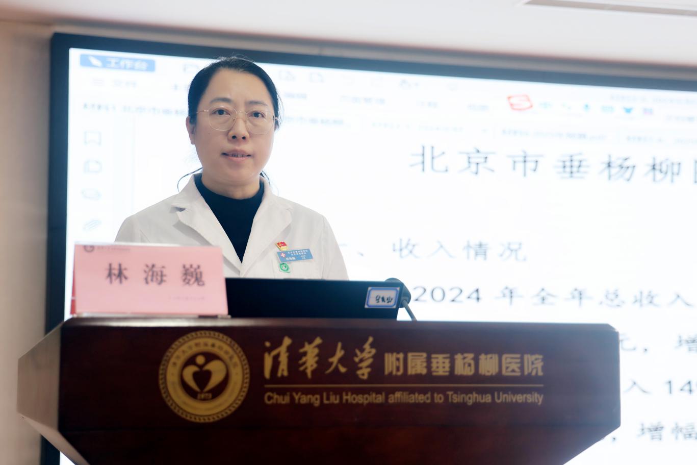 财务经济部主任林海巍报告《北京市垂杨柳医院2024年财务决算》《北京市垂杨柳医院2024年公务接待费使用情况》《北京市垂杨柳医院2024年度接受捐赠资助情况》《北京市垂杨柳医院2025年度财务预算》。
