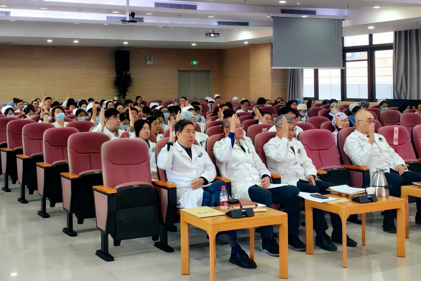 他号召全体干部职工围绕“以党建文化为引领,坚持防风险、强专科、精运营、促创新,持续提质优量增效”的工作方针,乘势而上,接续奋斗,为实现医院高质量发展而不懈努力!