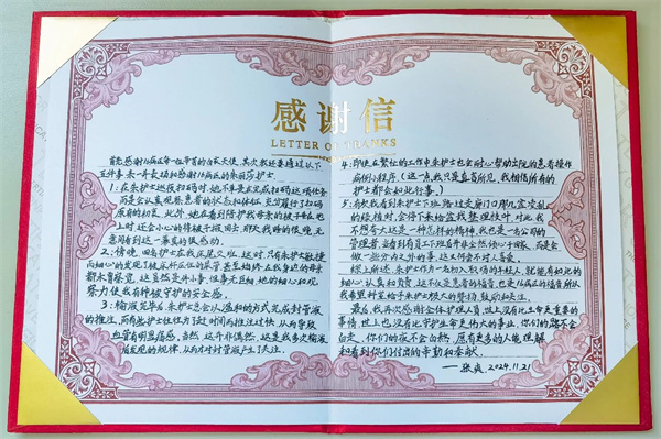 同时,您还让我更加珍惜团队的力量。护理工作离不开医生、护工、家属的支持,患者的康复是大家共同努力的结果。这封信不仅是对我的鼓励,更是对整个团队的褒奖。