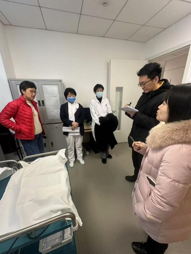 检查组专家先后前往机构办公室、伦理委员会办公室及专业科室,对机构建设、管理制度与SOP、项目质控、资料管理、场地设施及应急处理等方面进行了现场检查与指导。在检查过程中对机构、伦理委员会管理人员及临床试验项目负责人、研究者等相关人员进行了现场提问。专业组研究者熟练准确地回答了检查组提出的有关应急药品储备与使用管理、AED操作等问题。