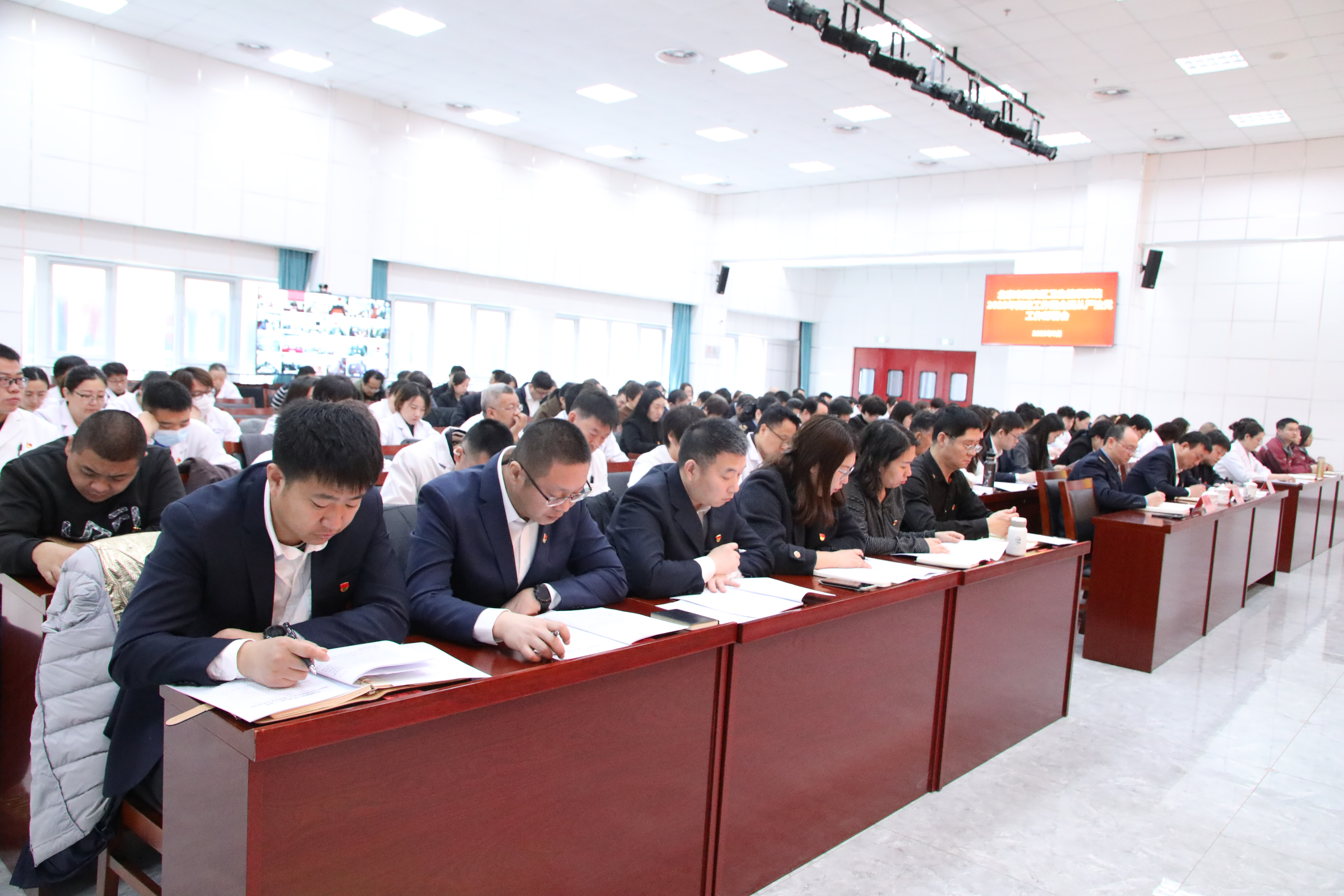 延庆区政府党组成员、副区长卫洪英,区纪委副书记、区监委副主任、一级调研员赵春生,第九综合派驻纪检监察组组长、区卫生健康委党委委员赵学文,区卫生健康委领导班子成员,机关各科室负责人,所属单位党政主要领导及相关负责同志共计300余人参会。卫生健康委党委书记、主任马素军主持会议。