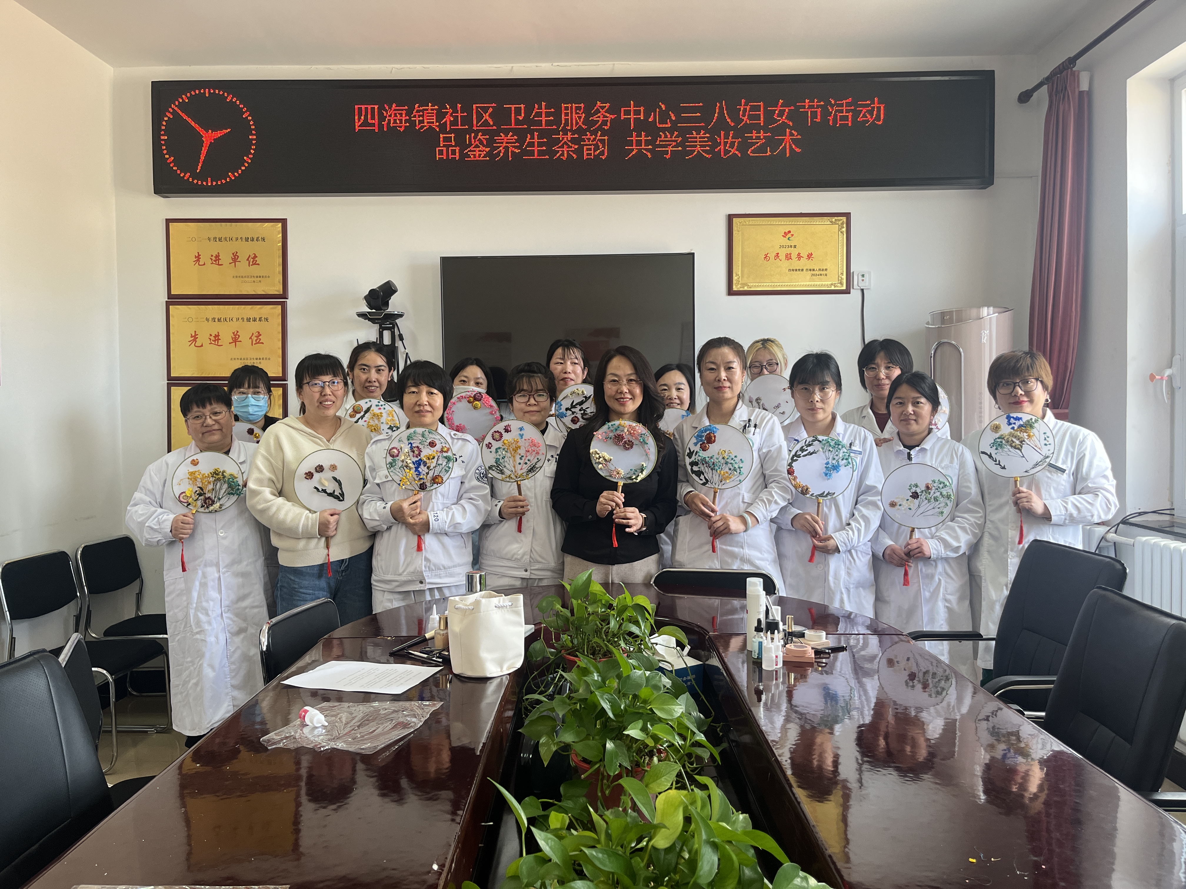 除了健康服务活动,四海镇社区卫生服务中心还组织了女职工职业素养提升行动,创新设置了养生茶品鉴、手工扇制作、职业淡妆教学等环节。通过现场化妆教学,引导女职工在职业形象塑造中展现新时代女性风采,为打造高素质卫生服务队伍注入活力。活动现场气氛热烈,参与职工纷纷表示在学习实践中增强了获得感与归属感。