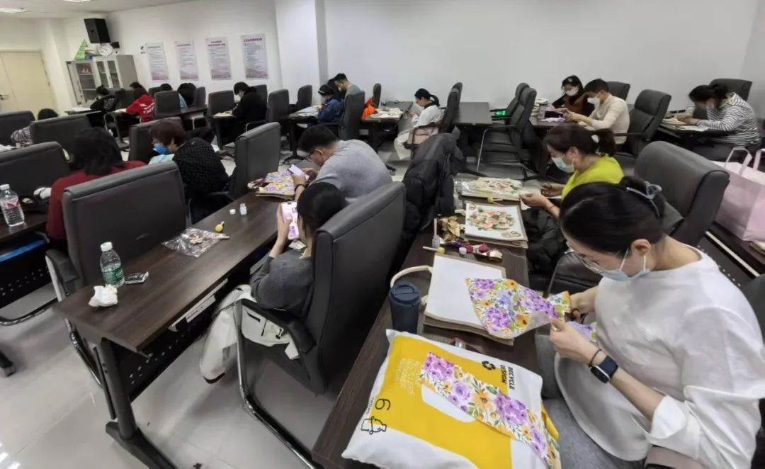 讲座结束后,进入了心理疏导活动——轻松愉快的产检档案专用手提袋手工制作环节。在党员赵亚梅等人的悉心指导下,孕产妇和家属们一同动手,制作出了可用于存放孕期产检档案的手提包。大家一边制作,一边交流孕期心得,现场气氛温馨融洽。