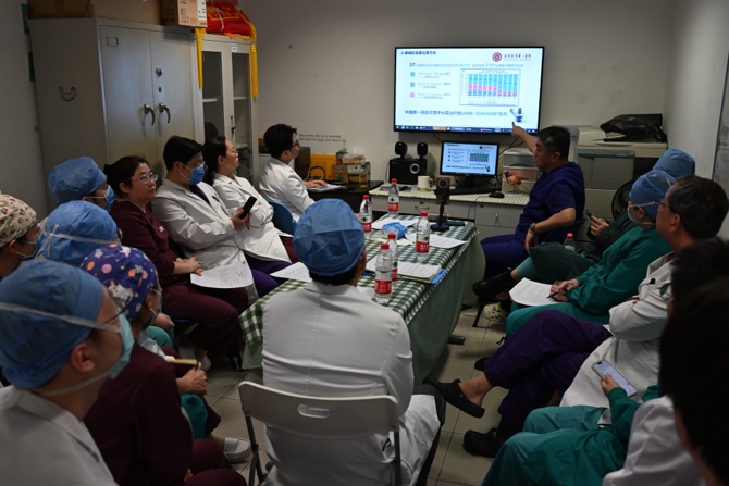 经过王进主任带领心脏外科团队反复研讨,认为冠状动脉搭桥联合左心室辅助的治疗方案对患者最为有利。为保证患者安全,2月6日,心脏外科与医务处、医保处、心血管内科、麻醉科、手术室、输血科、临床营养科、康复医学科等部门开展院内多学科会诊,为老先生制定了详细的治疗计划和全方位支持,确保围术期安全。2月7日,北大医院MDT团队联合外院专家团队,再次就手术及围术期治疗方案的各个细节逐一展开讨论,确保万无一失,为患者安全保驾护航。