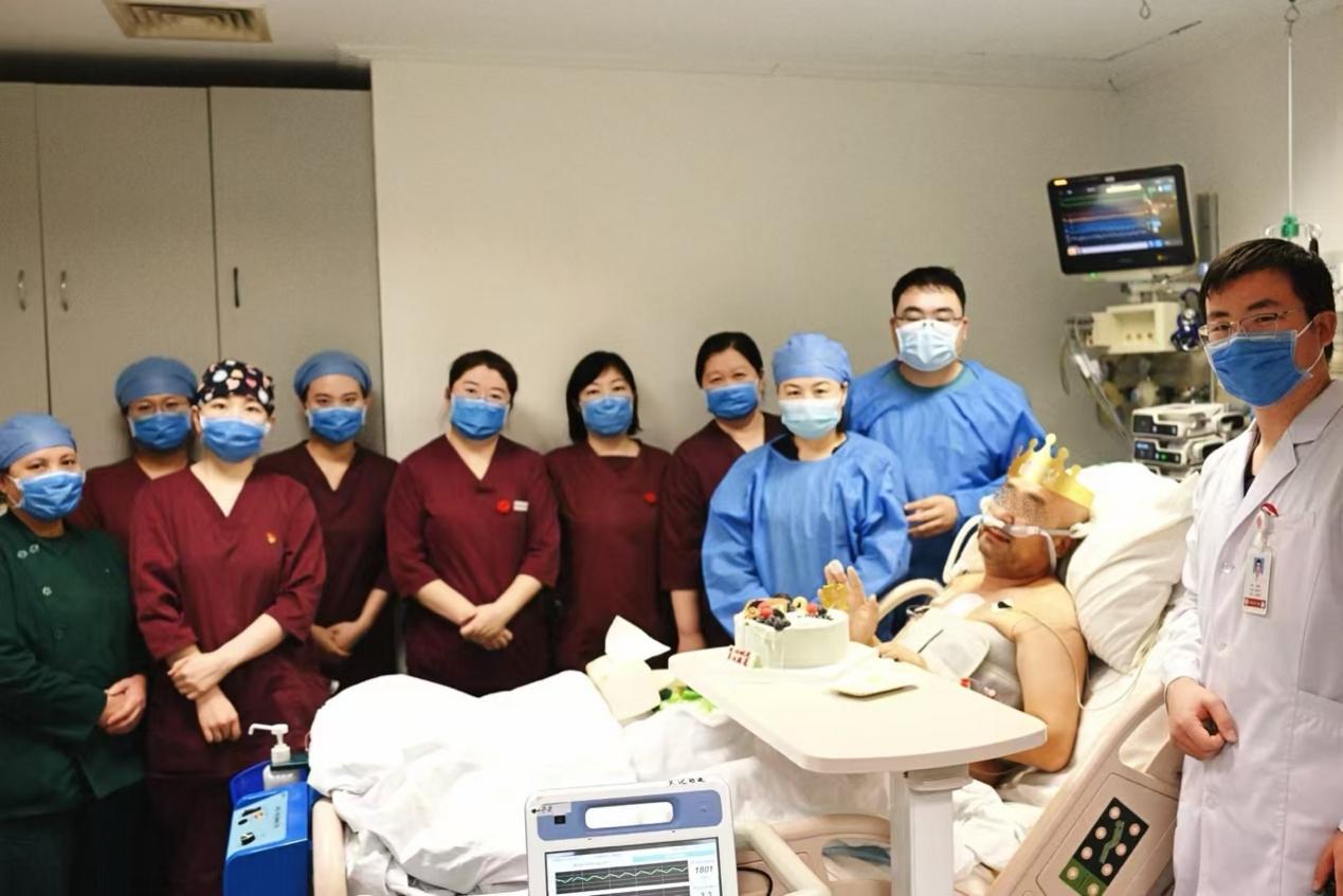手术的成功是临床医学的胜利,病房里更体现了人性的温度。患者术后在心脏外科监护室里依次经历了元宵节和他自己的生日,心脏外科医护团队悄悄策划了一场特殊的庆生。2月15日,当生日蛋糕被轻轻推入监护室,患者看到这一幕哽咽了,泪水与笑容交织的画面让在场所有人动容。王晓月护士长说道:“今天是你的生日,更是你的重生之日!”