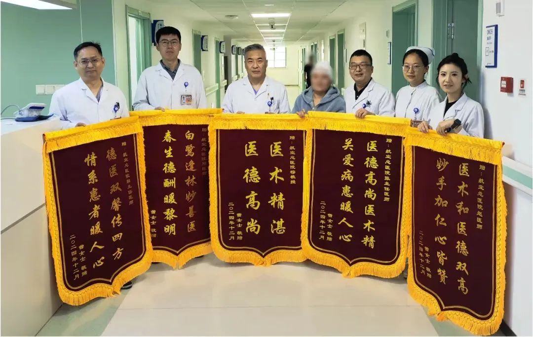 住院治疗期间,曾女士深刻感受到了神外十科医护人员如同家人般的温暖和关怀。这份真挚的情感,让她感动不已。善良真诚的曾女士不善言辞,但她还是通过赠送锦旗的方式,向穆苍山主任及科室医护人员,表达了自己内心的感激之情。