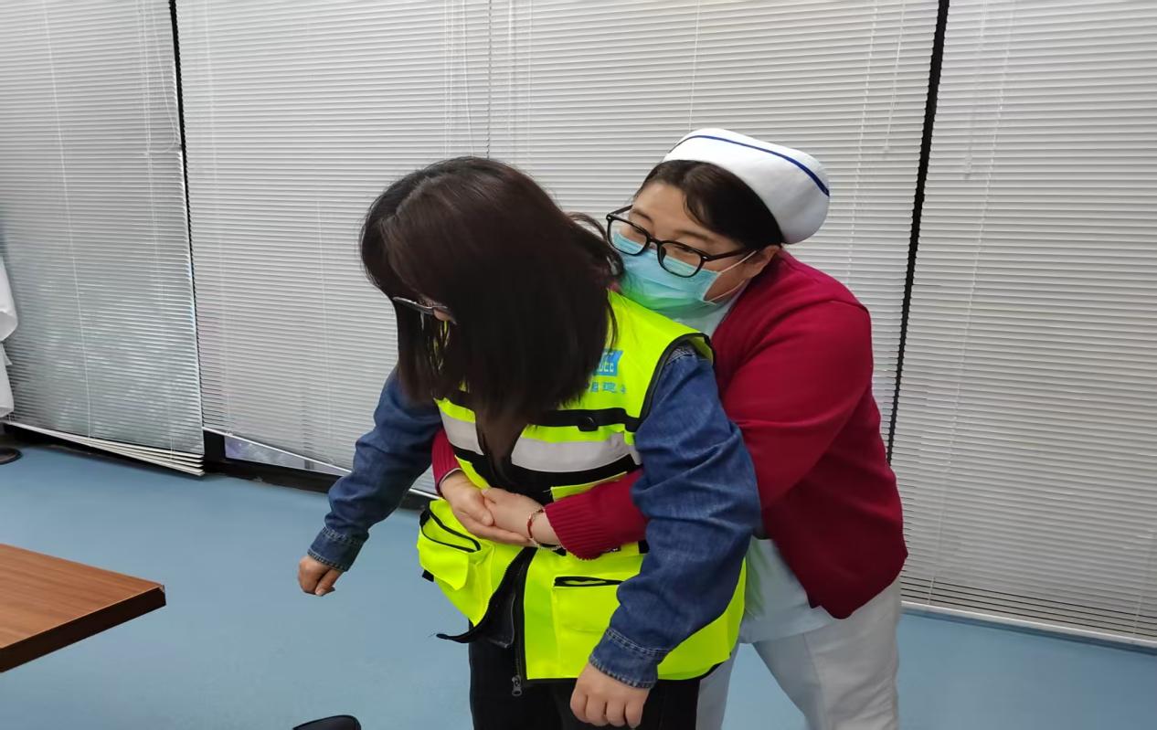 海姆立克急救法:施词护士为大家讲解了气道异物梗阻的判断、处理方法及预防措施;徐晓慧书记手把手教学气道异物梗阻急救手法,详细讲解操作误区,现场互动气氛热烈。