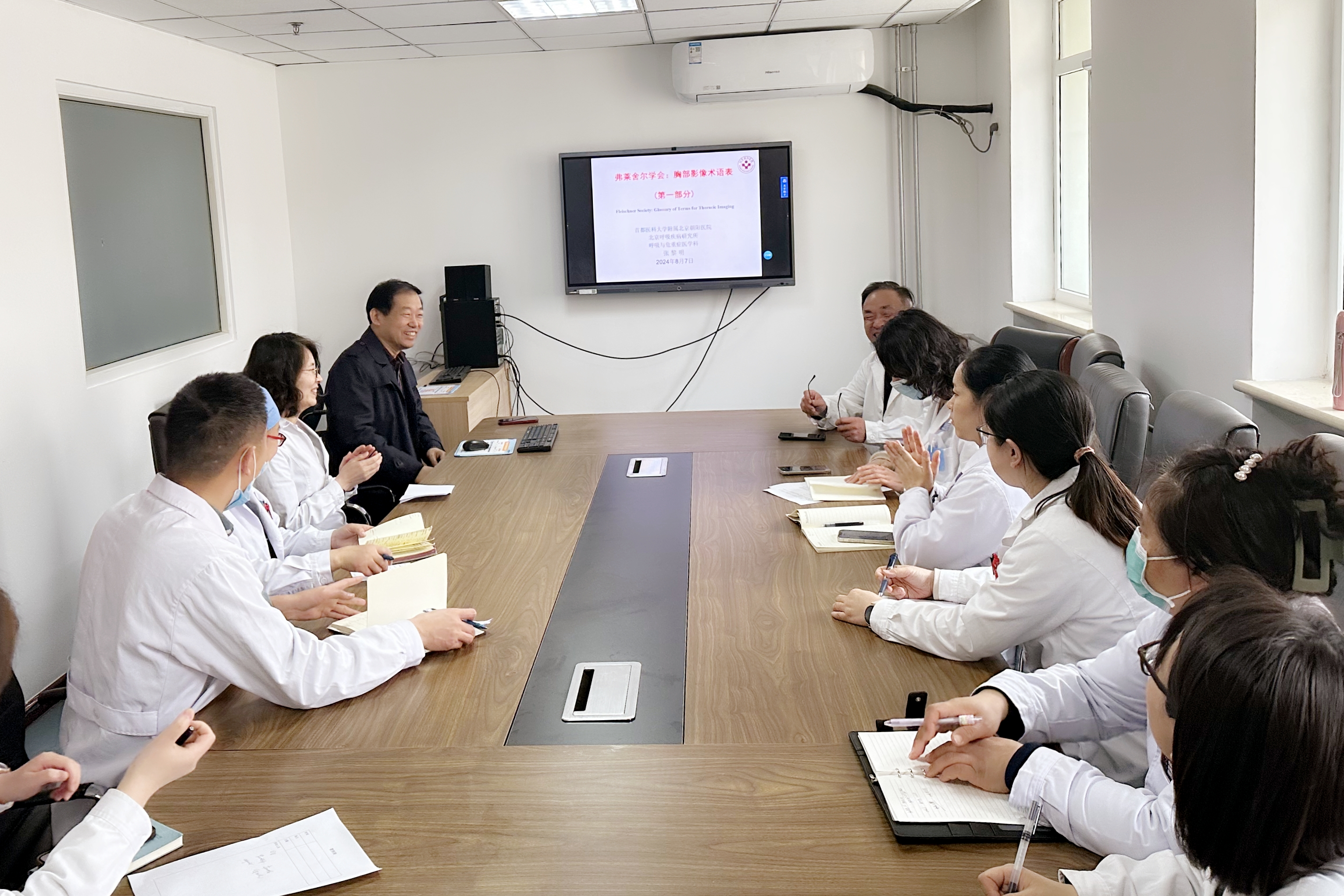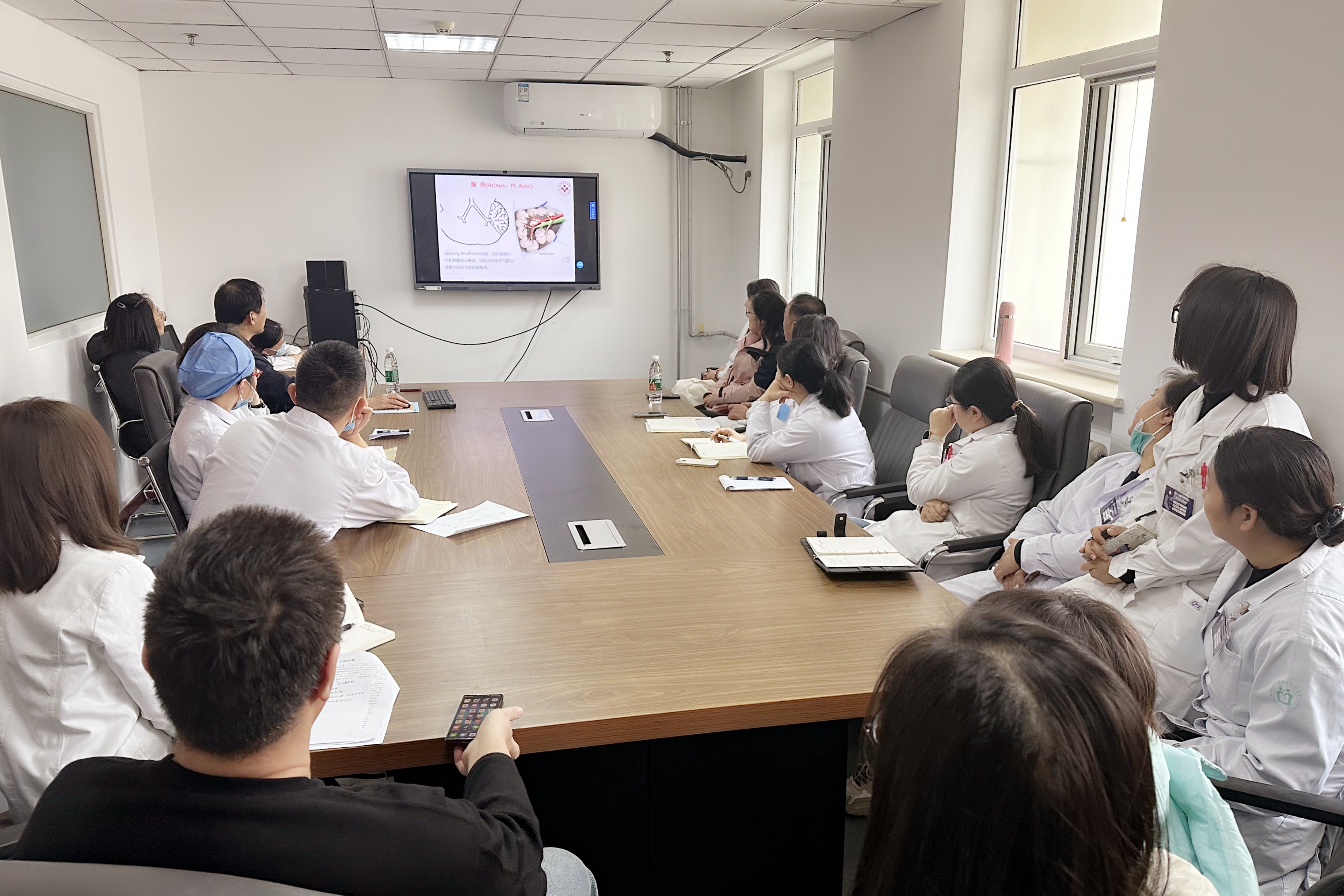 张黎明的首场授课题目为“弗莱舍尔学会:胸部影像术语表”。他从影像术语表出发,将胸部影像学表现与解剖学、病理学及临床诊断等整合在一起,深入浅出地进行了长达2.5小时的授课,可谓干货满满。医生们系统学习了胸部影像术语背后的放射学和病理学知识,听得意犹未尽,收获颇丰。授课结束后,彭夫松和梁鹏带领科室医生、进修医师就临床工作中的具体病例和疑难问题与张黎明展开热烈讨论,现场学术氛围浓厚。通过与专家近距离的互动式学习,医生们将理论知识与临床实践紧密结合,提升了解决复杂问题的能力,这种“抓基础、系统学、学以致用”的科室学习模式,极大地激发了医生们的学习热情,更为科室整体医疗水平提升注入了源动力。