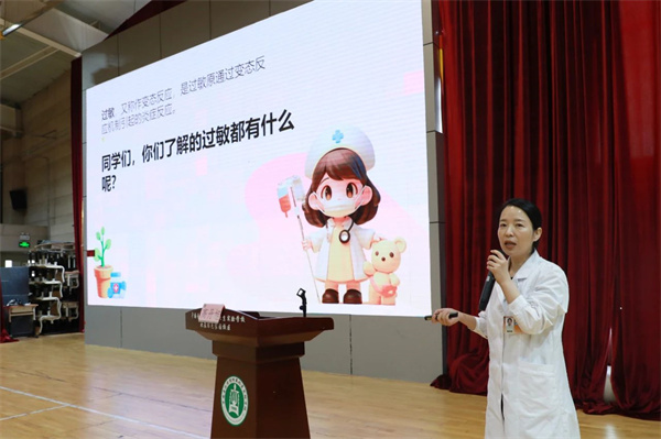 预防春季过敏,尽享灿烂春光。高丹旭围绕同学们关心的春季过敏问题讲解了常见过敏原、过敏症状及危害、春季过敏预防及护肤知识,同时,给出了很多专业性的预防春季过敏的好建议。在讲解的过程中还分享了皮肤急救的小知识,如被蚊虫叮咬后如何处理、皮肤过敏时应该怎么办等,同学们听得津津有味。