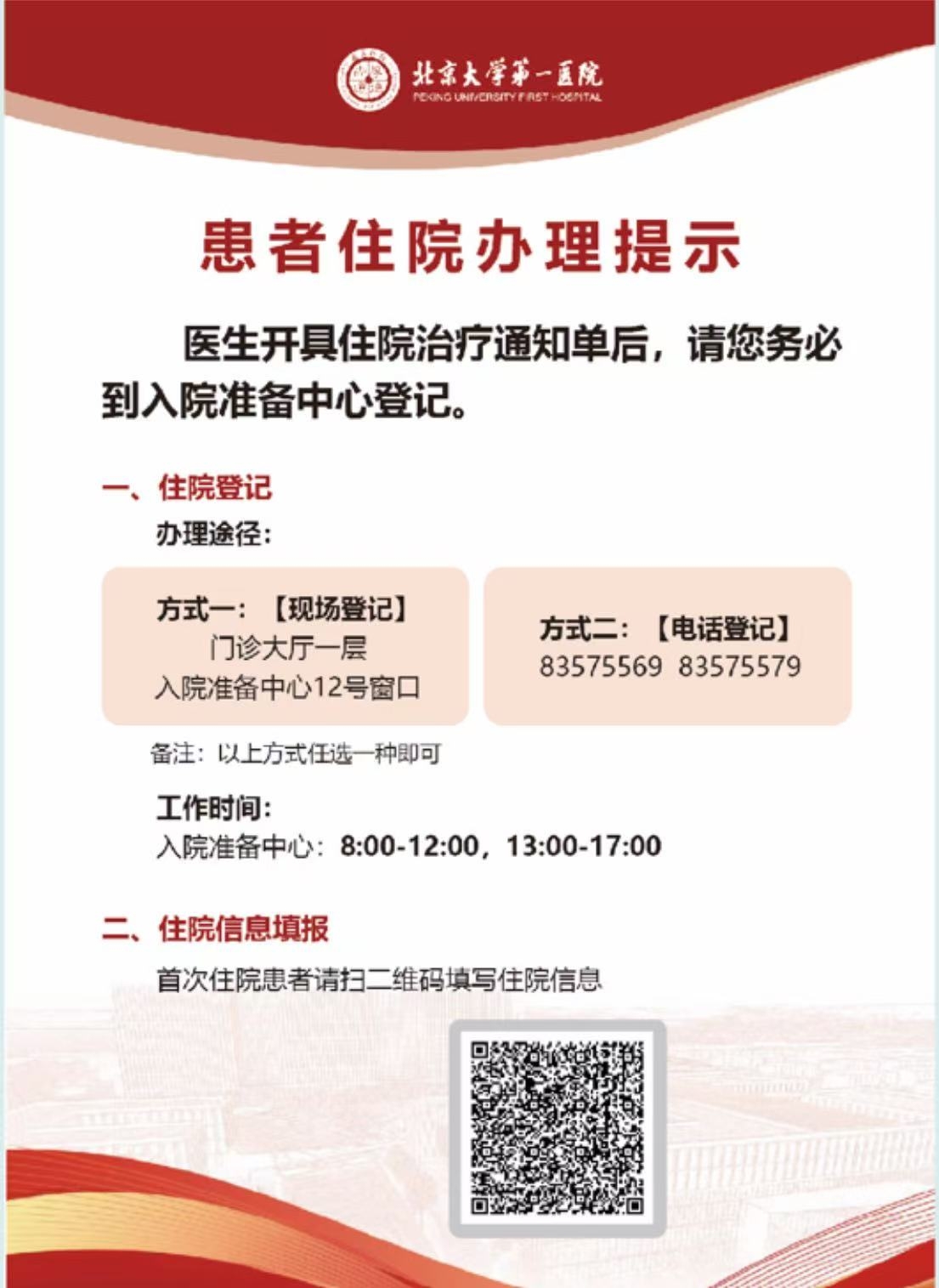 1.住院登记/床位预约:开住院条后7日内请您完成登记。