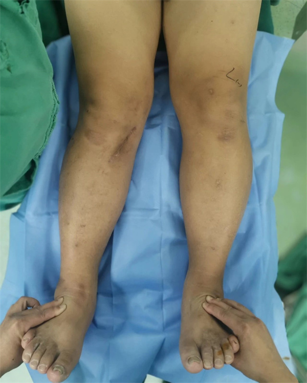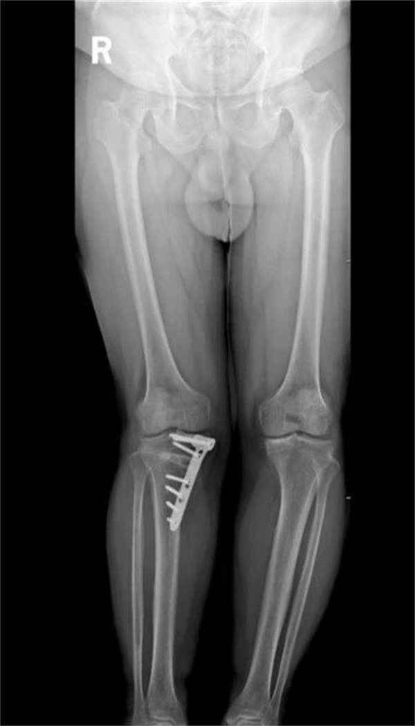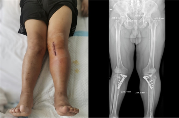 一个月前,47岁的李先生双膝关节活动后疼痛3年,半年前于外院诊断为“原发性膝骨关节病、后天性膝内翻畸形”,接受右胫骨内侧高位截骨术治疗,术后右膝疼痛有所缓解,但肢体外观明显外翻。近1月,李先生感觉左膝关节疼痛加重,坐位站起、行走及上下楼困难,听闻航空总医院骨关节科副主任李兵团队在诊治膝关节骨关节炎、矫形手术方面有丰富经验,随即慕名就诊。