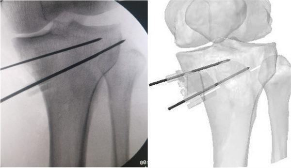 李兵表示,手术的顺利开展得益于3D打印PSI导板的应用,术中极大地简化了手术操作步骤,避免了传统手术中反复调整力线和透视确认的繁琐流程,减少了术中透视次数,降低了医护人员及患者的辐射伤害,有效缩短了手术时间。