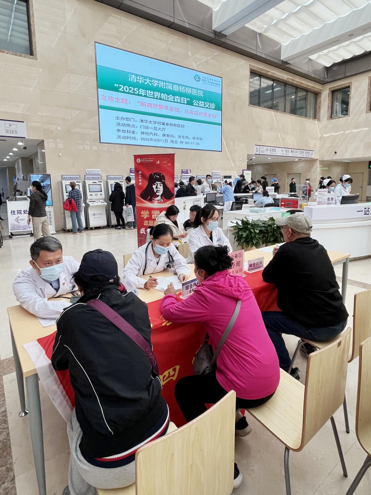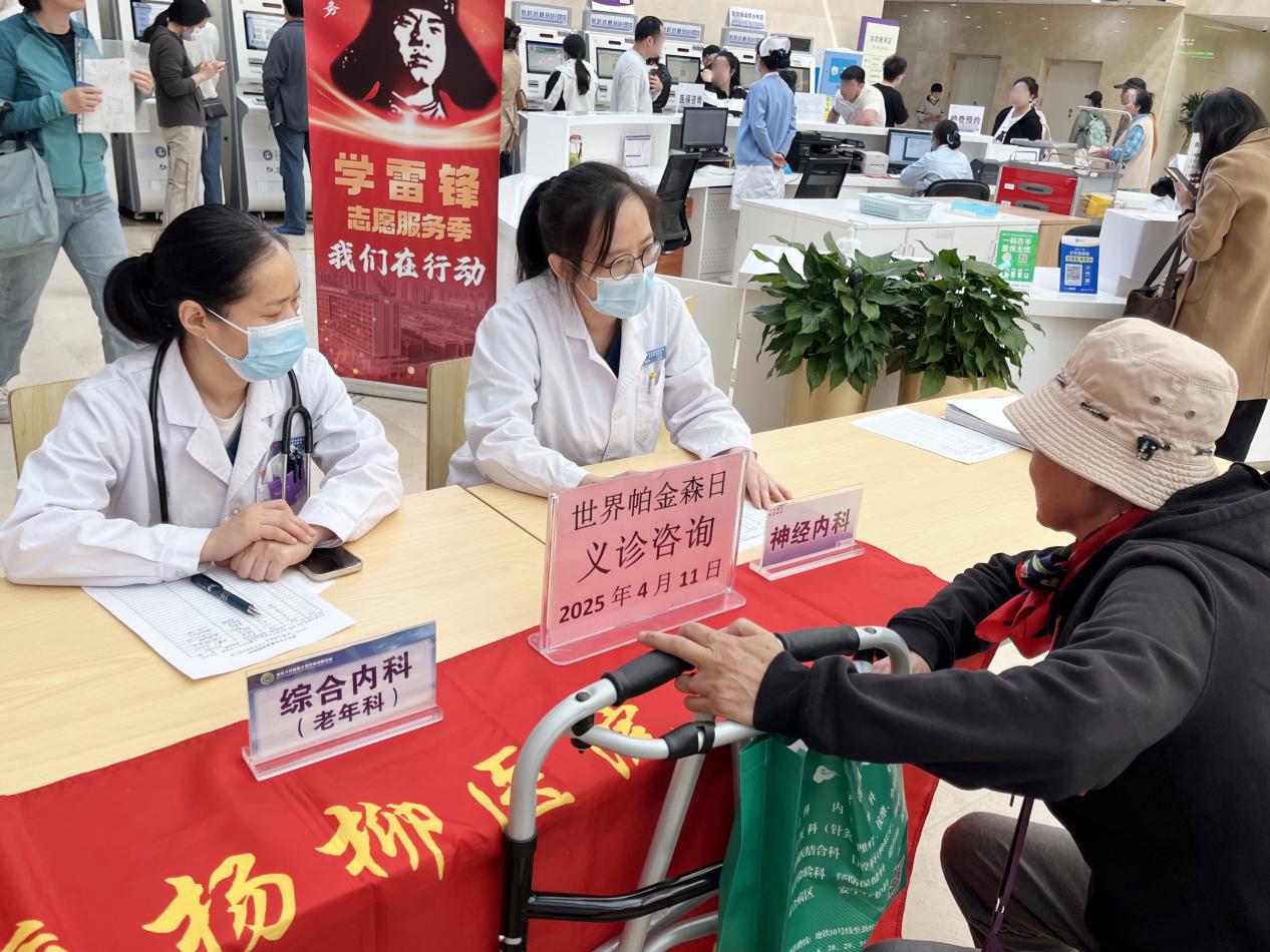 2025年4月11日,在第29个“世界帕金森病日”来临之际,北京市垂杨柳医院神经内科、门诊部联合老年医学科、康复医学科、检验科在医院门诊大厅开展了主题为“帕病预警早发现,从容应对更主动”的义诊活动。本次义诊旨在普及帕金森病防治知识,提升公众对帕金森病的认知,帮助患者科学应对帕金森病。检验科主任宁永忠、神经内科主治医师刘宇、老年医学科主治医师杜玉娟参加了此次义诊。