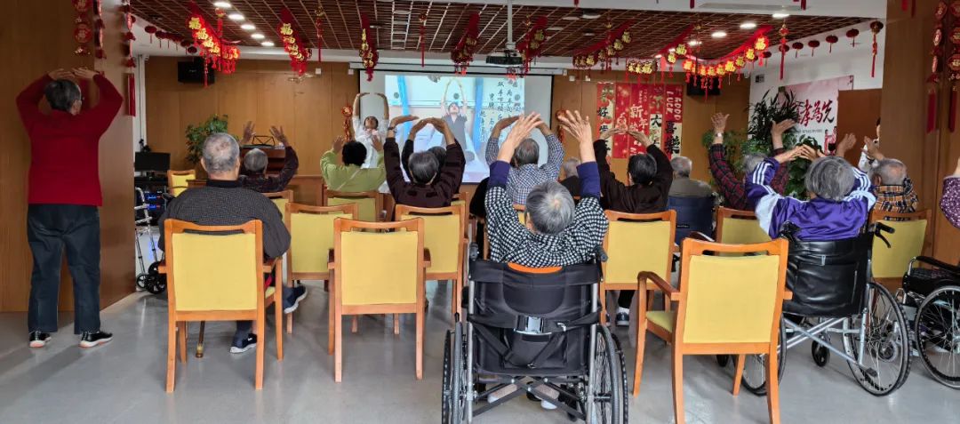 讲座结束后,老年专科护士王欢带领老人们体验了传统养生功法——坐式八段锦。针对老年人行动特点,在保障安全的前提下,通过“汇集叩齿”“鸣天鼓”等古代传统养生招式,帮助老人疏通经络、调理气血。
