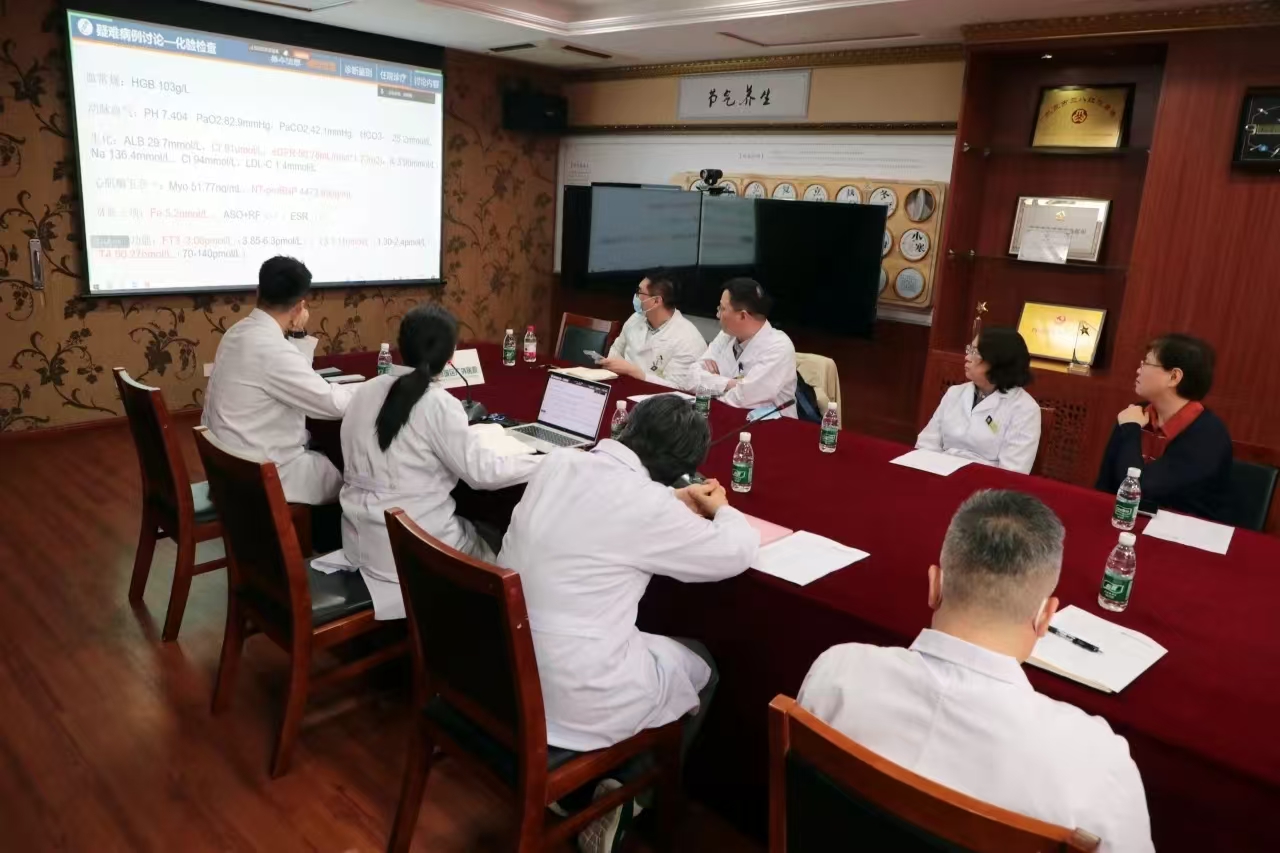4月23日,广外医院召开了一场“双主任制”下的心血管呼吸科疑难病例讨论会。心血管呼吸科名誉主任、中国医学科学院阜外医院张竞涛教授,肾病科非透析学组学科带头人、中国中医科学院广安门医院饶向荣教授,医务科名誉主任、中国医学科学院阜外医院医务处曹红,以及院内多科室负责人现场参与,以“三甲专家+本院团队”的立体化MDT模式为复杂病例诊疗提供多层次支撑。会议以线上线下同步召开的方式进行,方便全院人员学习。