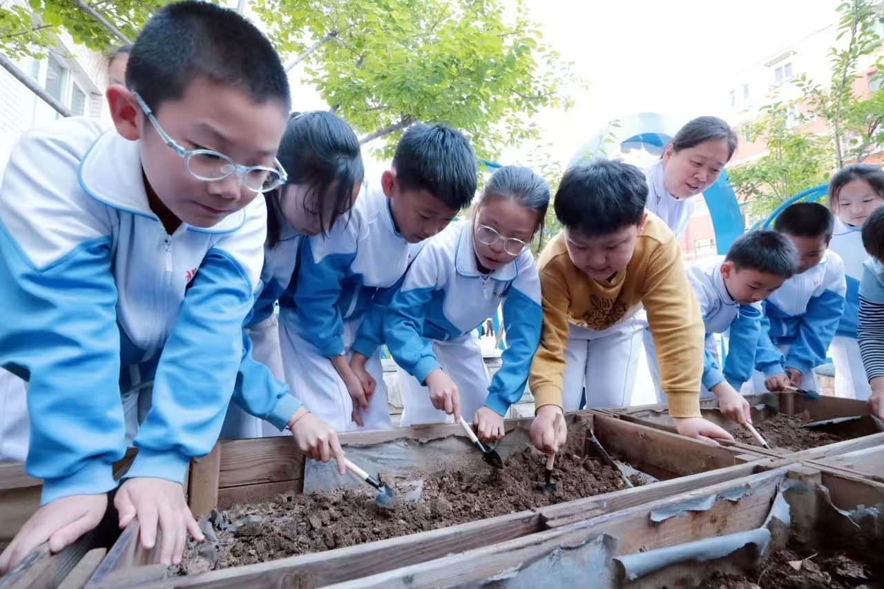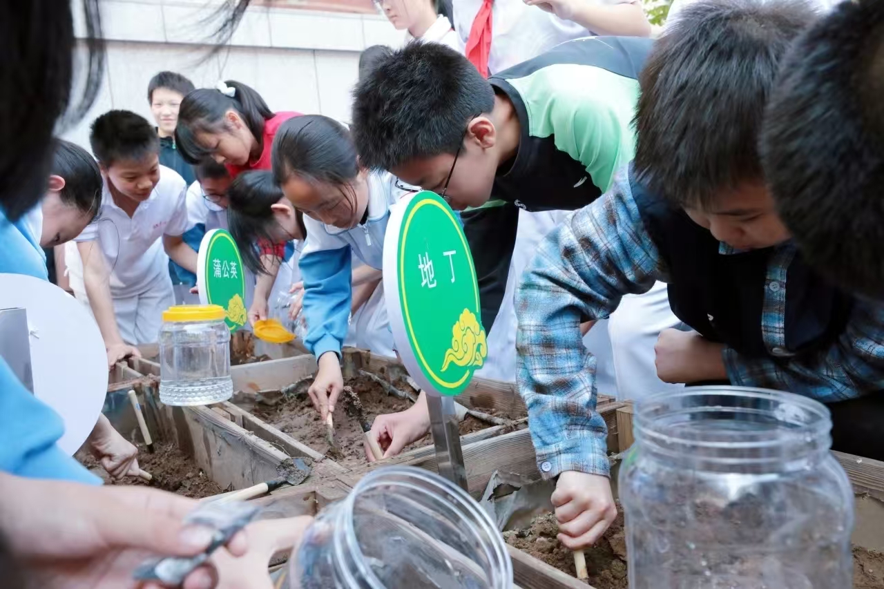 随后,带着新鲜出炉的知识,学生们拿上种子、带上小铲来到春耕园,在药师的指导下开始播种。泥土沾满小手,笑声洒满园子。转眼间,一排排整齐的种植箱已悄然“住”满了草药种子。未来,它们将和正在学生们心里的中医药文化种子一样,在阳光和雨露的滋养下破土而出,拔节生长。