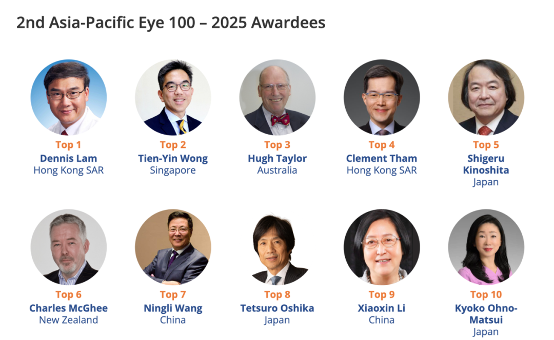 据悉,本届大会汇聚全球76个国家的12,000余名代表,“亚太眼科百强榜”及“21世纪亚太眼科领袖榜”由亚太眼科医学会(APAO)、亚太眼科教授学会(AAPPO)及亚太眼科期刊(APJO)联合发起,旨在表彰亚太眼科领域及全球范围内为眼科及视觉科学做出重大贡献的杰出人才。其中,本届亚太眼科百强榜名单表彰了来自15个国家的主要领军人物,共有19位中国大陆专家入选。