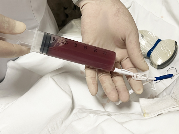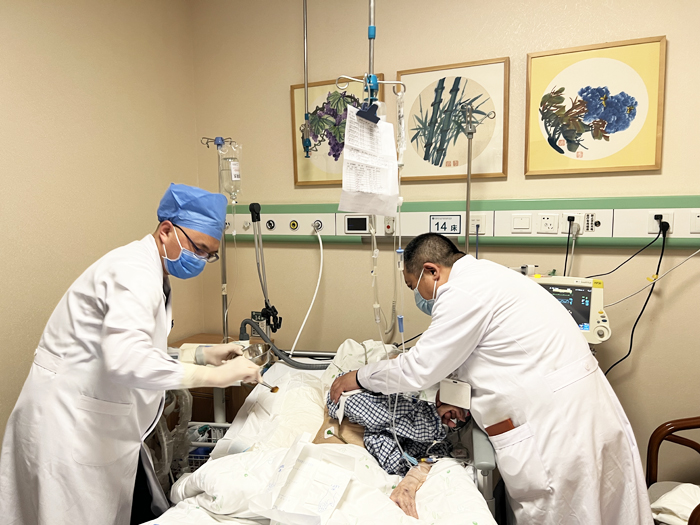 近日,潞河医院医疗保健病区收治了一位百岁老人。老人来到医院时,已经出现了严重的呼吸困难,喘憋症状明显,无法平卧。急诊检查结果显示,老人右侧胸腔积液量极大,压迫肺部,导致呼吸功能受限。同时,血气分析提示2型呼吸衰竭,同时伴有心衰状况,病情已十分危重。当班医护人员迅速为老人完善必要化验检查,并立刻上报医疗部,医疗部高度重视,及时组织多学科会诊。呼吸科、心内科、重症医学科、介入超声科等科室第一时间到达医疗保健病区,共同会诊和治疗指导。