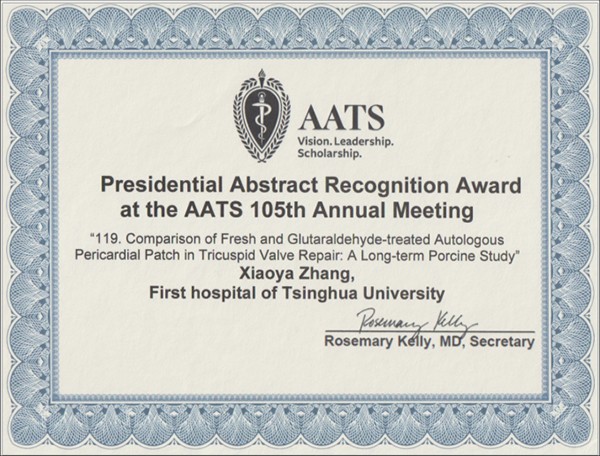 张晓雅副主任医师——自体心包修复创新研究荣膺AATS主席论文奖,团队智慧闪耀国际舞台