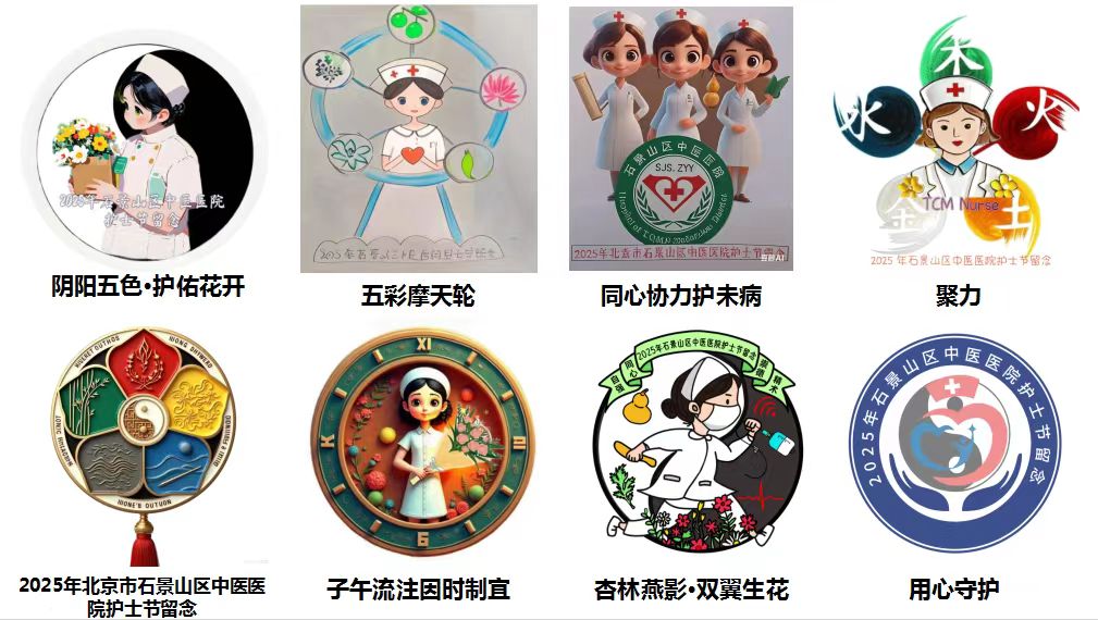 此次征集活动共收到15件创意作品。从临床一线护士到护理管理者,作者们精心构思创作,手绘稿上工整的线条、电子稿中鲜活的配色,无不凝聚着我院护理人员对职业的热爱与深刻思考,每一份设计都是护理智慧与中医文化的完美融合。从太极阴阳的和谐共生到护理技术的现代演绎,从百草纹样的灵动勾勒到艾灸烟云的意象表达,护理人员以艺术语言生动诠释了中医护理的历史传承,更彰显了现代护理的创新活力。