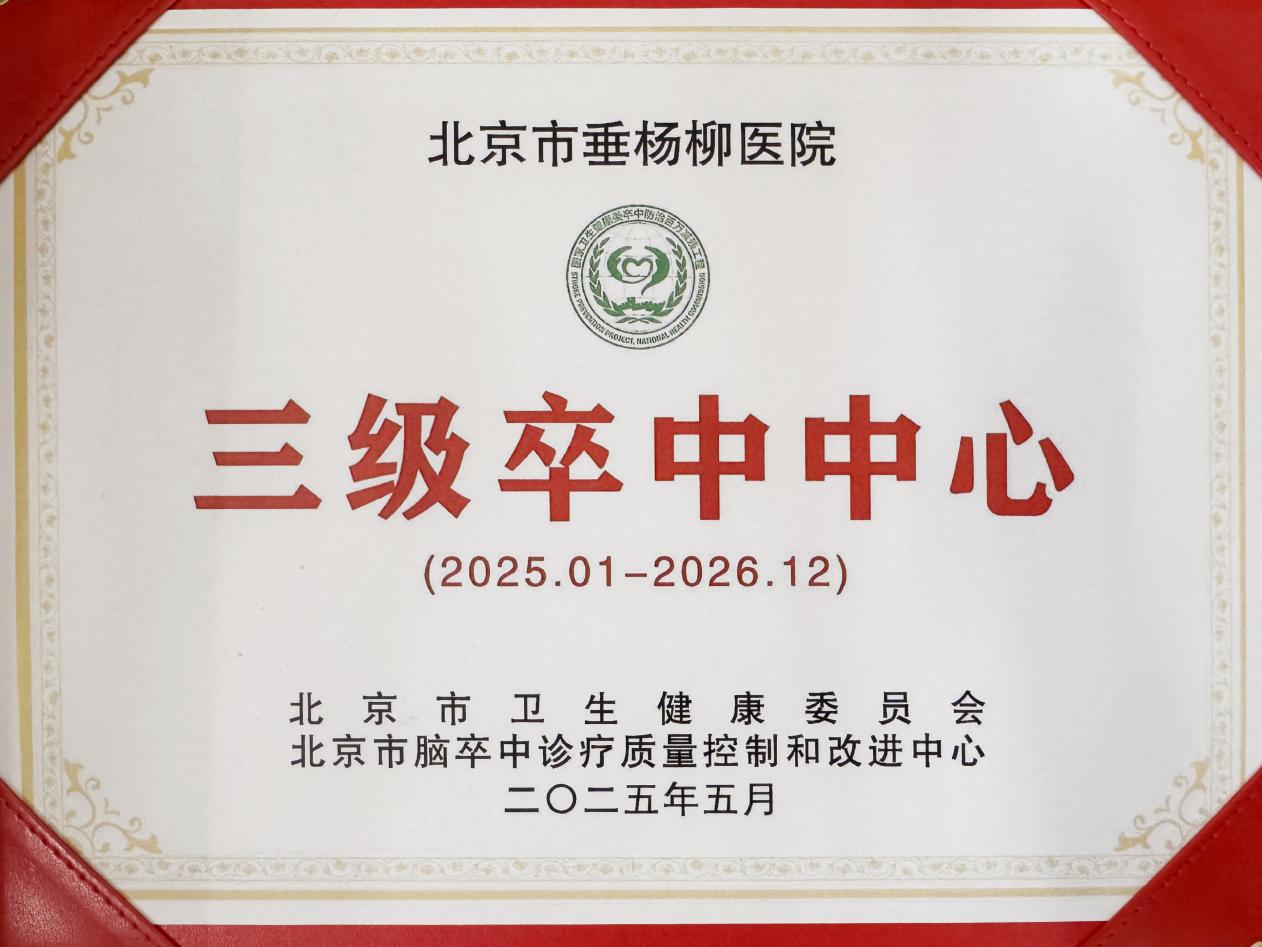 北京市垂杨柳医院既往作为国家级“示范防治卒中中心”及北京市“防治卒中中心”,在卒中诊疗、防治方面已取得了优异成绩,此次获评“北京市三级卒中中心”,又是医院发展过程中的一个重要里程碑,更是新起点。医院将以此为契机,继续秉承“精诚、协作、至真、卓越”的院训,不断加强卒中中心建设,持续优化卒中救治流程,提高卒中患者救治能力,同时积极发挥朝阳区脑卒中质控中心作用,为区域内及周边地区患者带来更多获益。医院及神经内科也会积极开展卒中宣教和健康科普宣传活动,提高公众对急性脑卒中的认识和预防意识,同时加强康复随访,推进卒中患者全生命周期健康管理,为落实健康中国战略及百姓脑血管健康保驾护航!