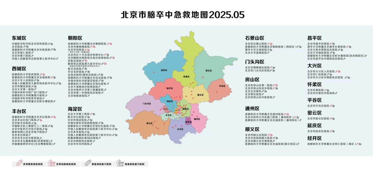 脑卒中具有高发病率、高死亡率、高致残率、高复发率的特点,一旦发病,会给患者和家庭带来沉重的经济负担和巨大的痛苦,呼吁大家出现脑卒中症状要立即就医。质控会后发布了2025版北京市脑卒中急救地图,该地图为患者提供快速、准确的救治指引,帮助患者在“黄金时间窗”内能尽快得到有效救治!