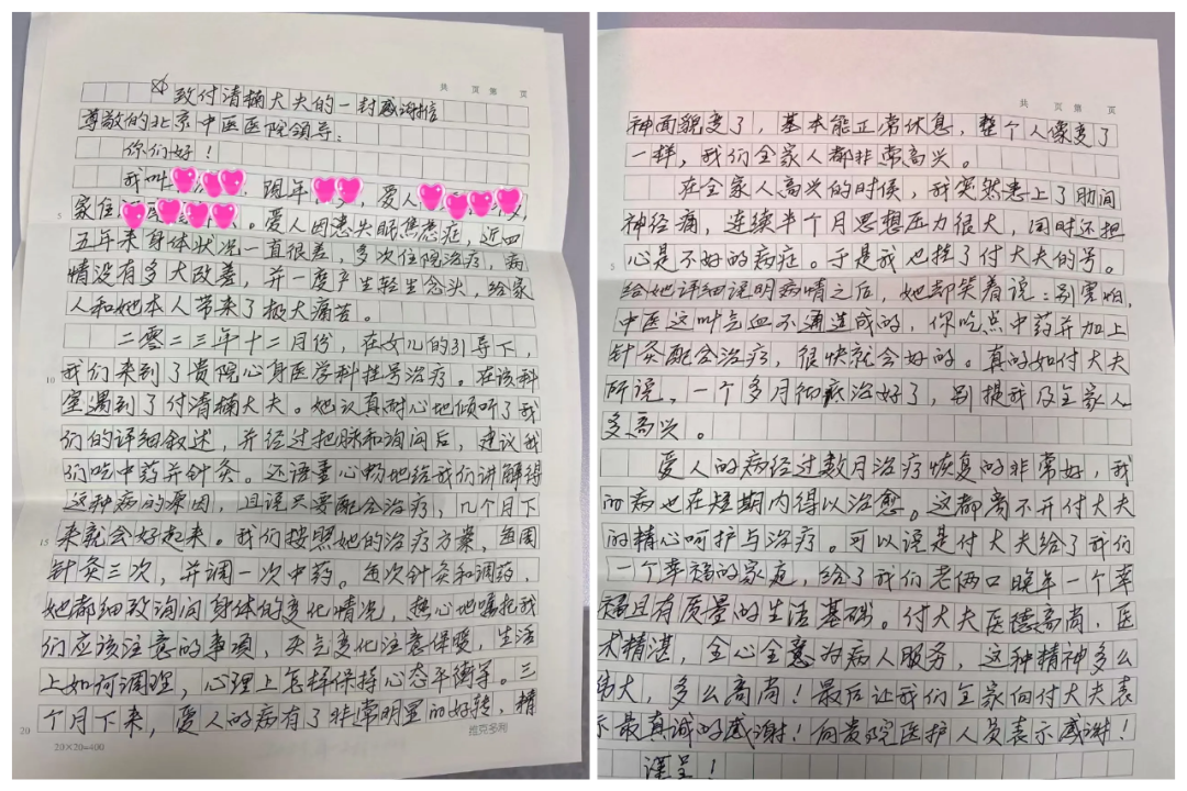 “我老伴和我的健康都离不开北京中医医院医疗团队的呵护和治疗!”王叔叔痊愈后特地送了一份手写感谢信,表达自己的感激之情。
