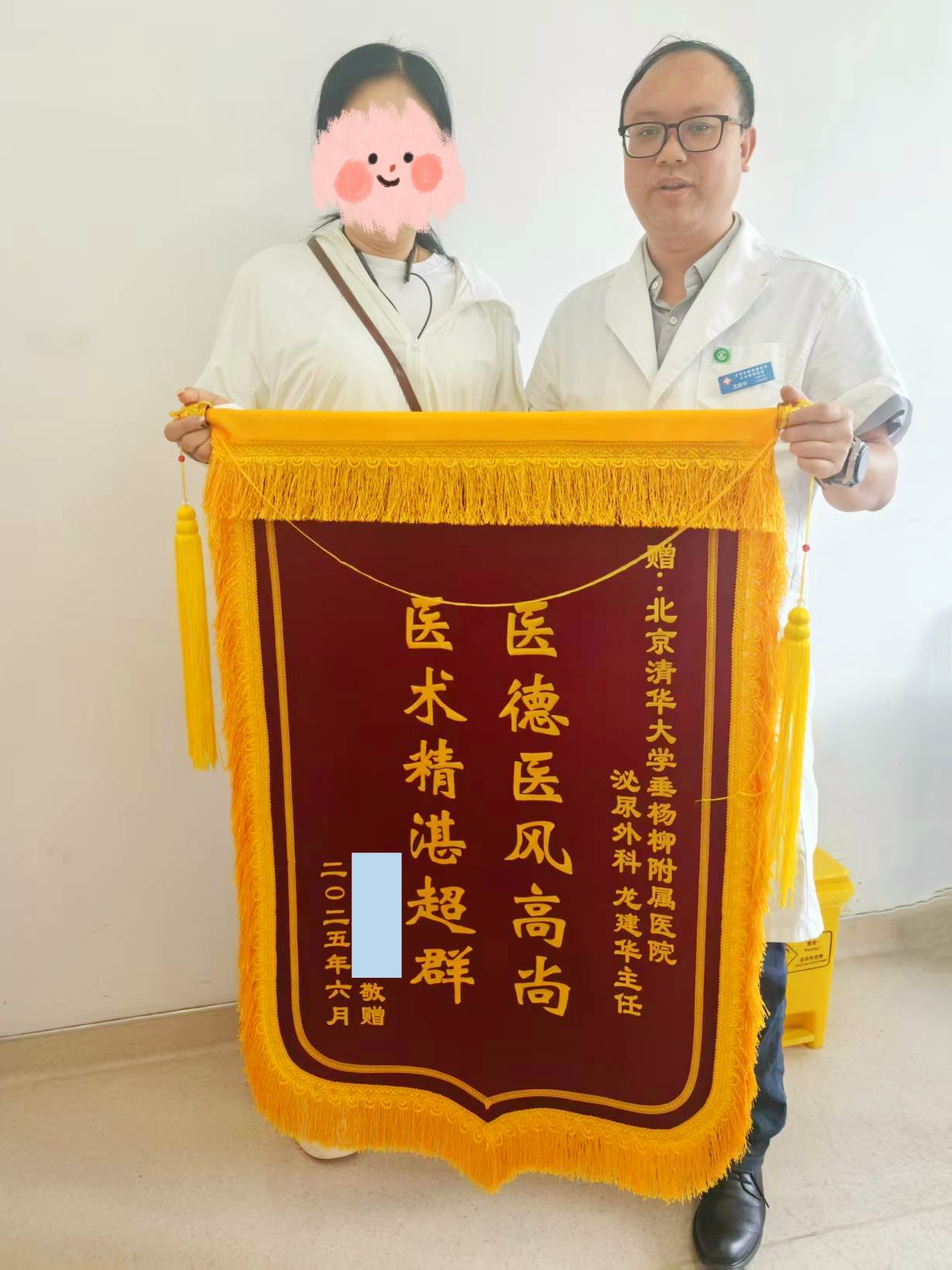 “三个小孔解决大问题,肾盂癌患者重获新生!”近日,康复出院的肾盂癌患者林先生家属,将一面印有“医术精湛超群,医德医风高尚”的锦旗,郑重交到清华大学附属垂杨柳医院泌尿外科主任龙建华手中。这面承载着患者重获新生的喜悦与感激之情的锦旗,生动展现了该科微创技术“三孔法一体位腹腔镜肾盂癌根治术”的硬核实力。
