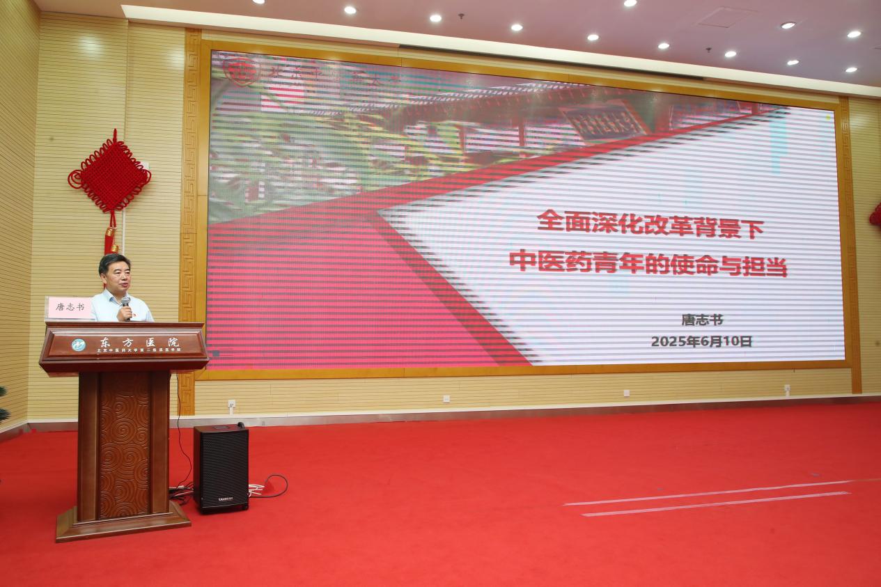 6月10日上午,北京中医药大学校长唐志书以“全面深化改革背景下中医药青年的使命与担当”为题,为北京中医药大学第二临床医学院(东方医院)学生党支部带来一堂立意深远、催人奋进的专题党课。东方医院党委书记韩振蕴,党委副书记、院长商洪才及党政领导班子成员,教育处教师、四个学生党支部的党员共同聆听。本次党课由院党委书记韩振蕴主持。
