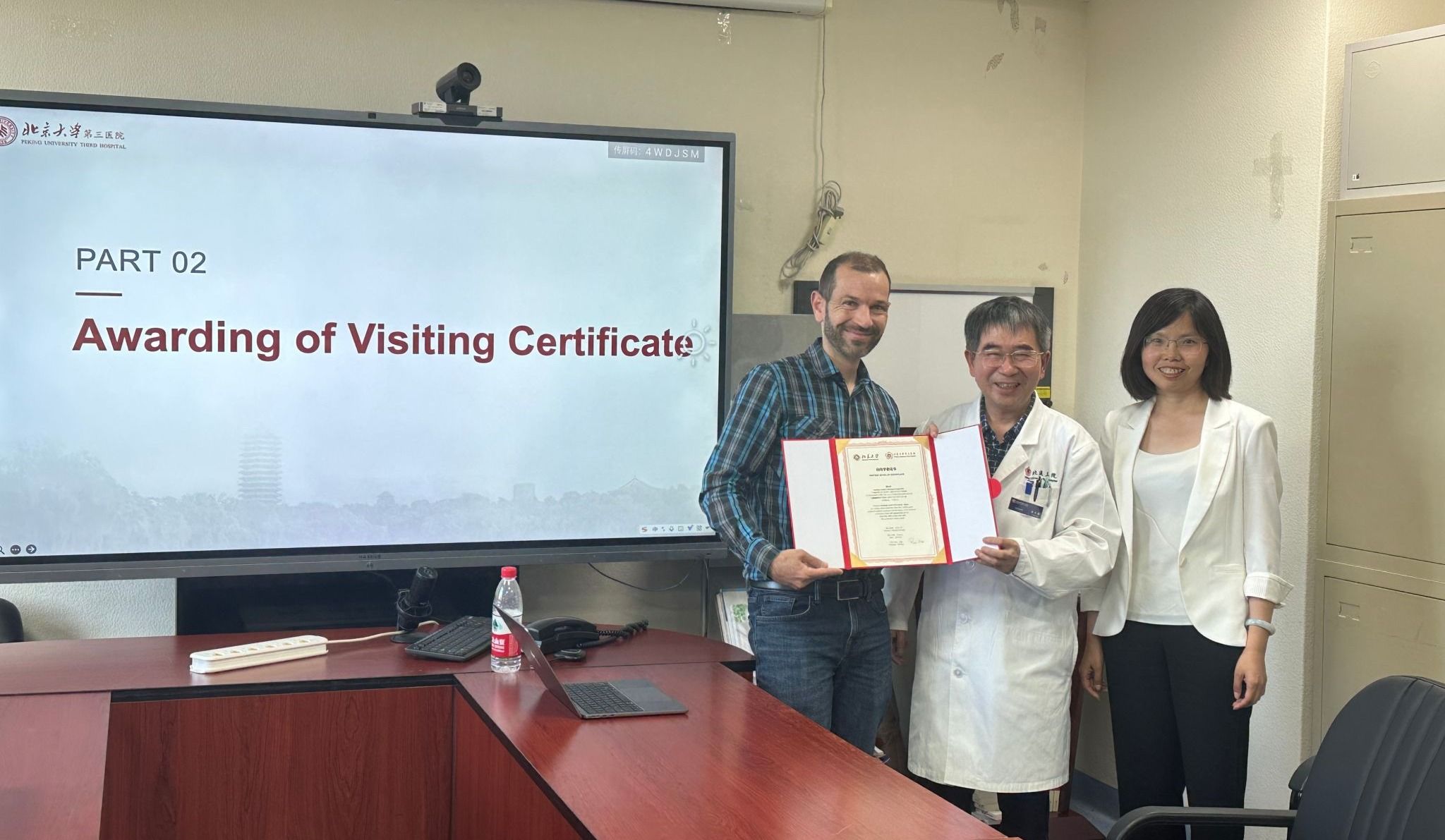 5月21日,内分泌科为Santiago副教授举办了欢迎仪式。内分泌科副主任杨进介绍了北京大学第三医院及内分泌科的发展历程与学术成就,魏蕊研究员介绍了医学创新研究院平台建设、科室实验室概况和科研工作。随后,Santiago参观了北京大学医学部校园、校史馆、北京大学第三医院内分泌科病房和门诊,重点了解了科室临床研究开展和全院血糖智慧管理中心的建设情况。