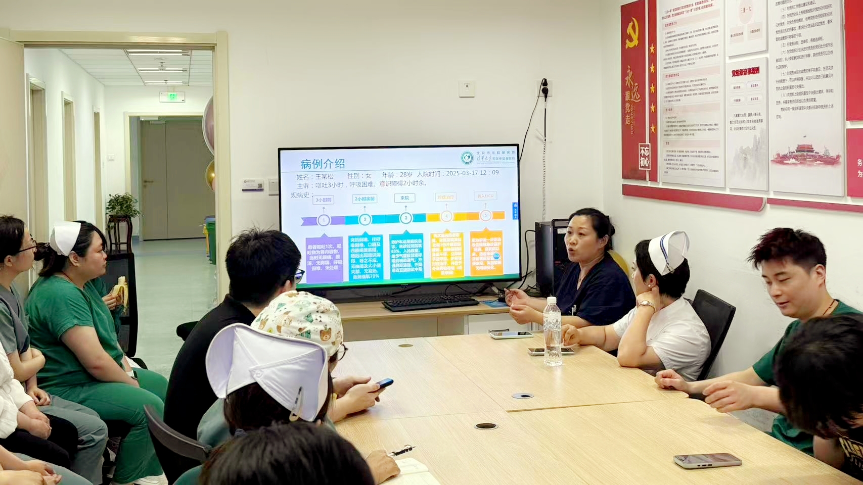 首先由EICU主管护师任晓晓汇报亚硝酸盐患者救治的经过。她从患者抢救室紧急救治到CRRT护理、亚甲蓝用药等细节进行了回顾,系统地讲解了亚硝酸盐中毒的急救流程、病情监测要点及针对性护理措施,同时也教会大家在生活中如何预防亚硝酸盐中毒。