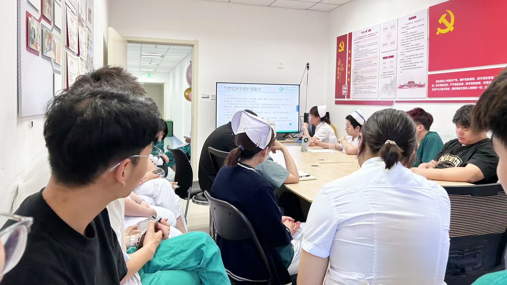 其次由急诊科主管护师李一婷针对气管切开重症肺炎患者展开病历讨论。她围绕气切套管管理,如何进行肺复张,俯卧位通气的护理要点及感染防控等关键环节,带领全科护理人员展开深度探讨。